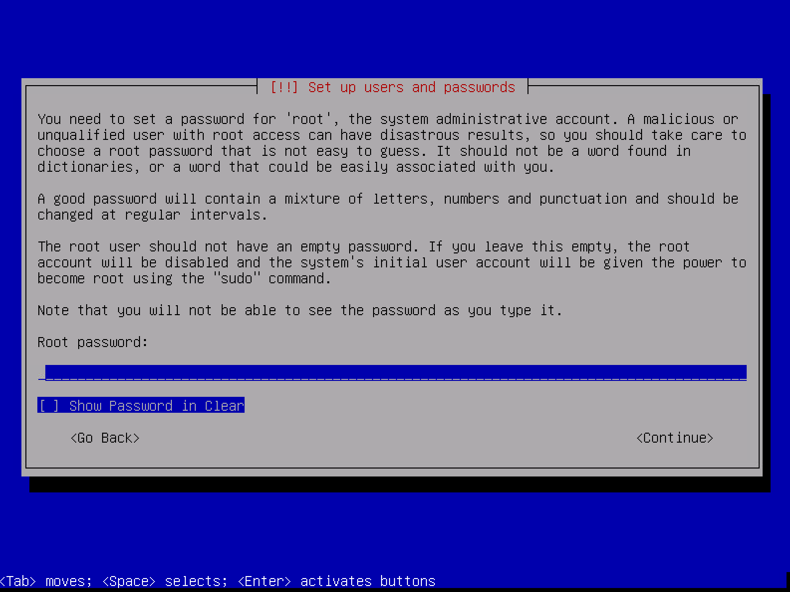设置 root 用户密码,回车后需要再次输入确认。
