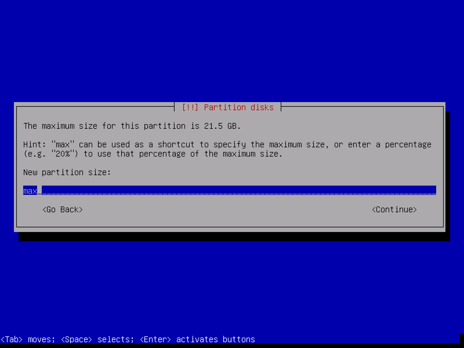 分区容量输入 max (分配全部可用空间)
