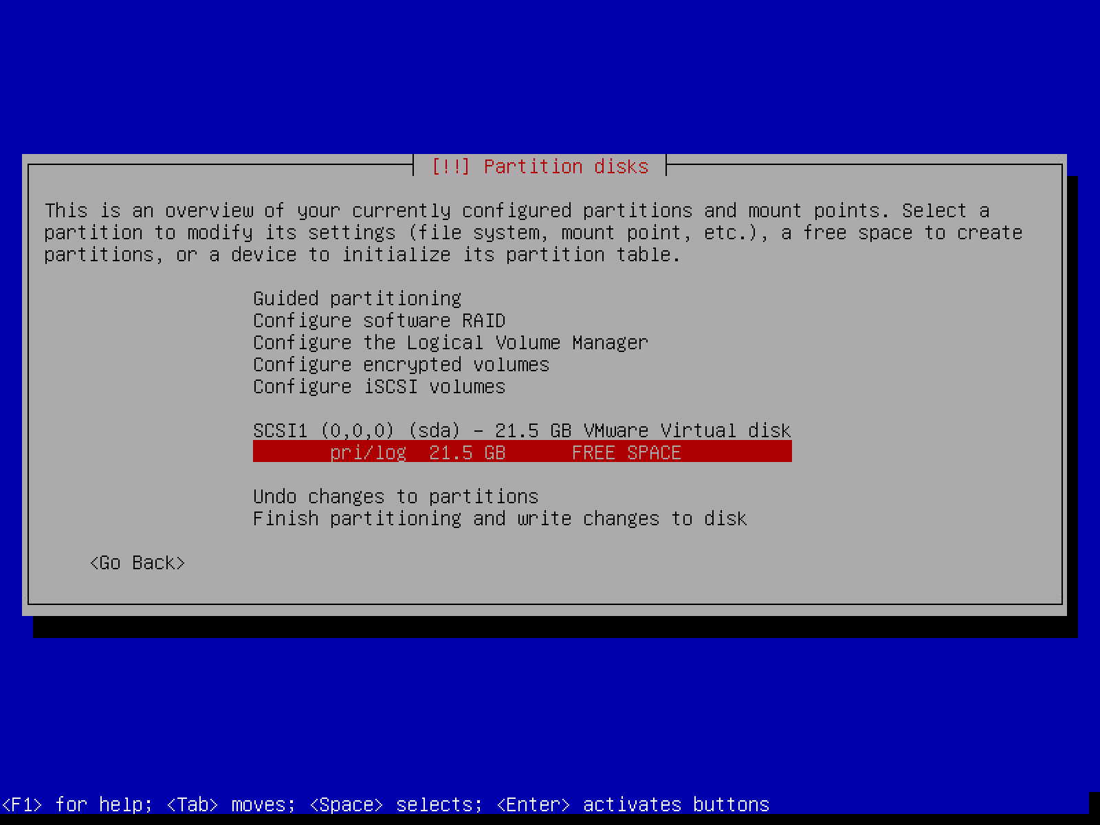 作为服务器使用,我们应该给系统分配 SWAP 空间(类似虚拟内存),但是为了方便管理,等系统安装好后我们再配置一个文件作为 SWAP 空间而不是选择分配一个独立分区。